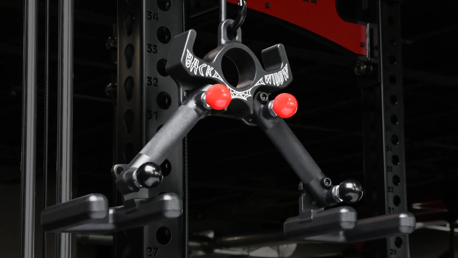 The patent-pending Back Widow, by Flex Wheeler, is the gym version of a Swiss Army Knife, potentially replacing more than a dozen separate handle attachments and accessories with a single, all-in-one alternative. Users can quickly adjust the Back Widow into more than 15 different grip positions without having to remove the attachment, making it uniquely equipped for high traffic gyms or more time-efficient individual workouts.