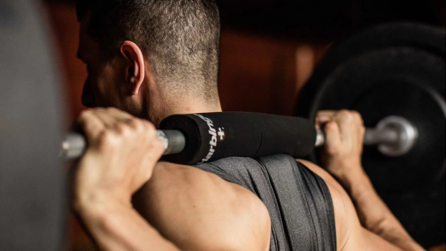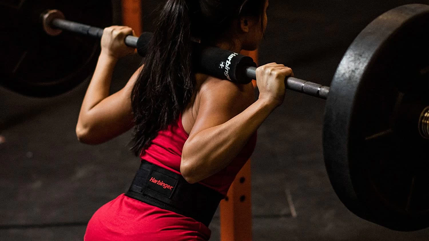The NeoTek Foam Core Bar Pad from Harbinger, available here in a 16” Olympic format, provides a comfortable layer of protection when performing back squats and other exercises where the barbell rests on the body.