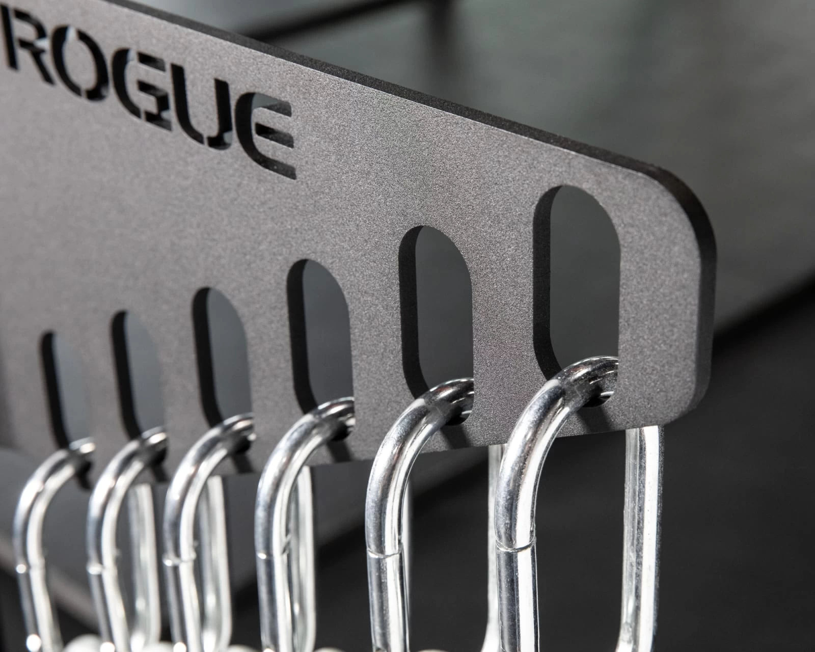 The Rogue Monster Lite Chain Hanger is a bolt-on attachment designed exclusively for use with our Monster Lite Series racks and rigs. Constructed from 0.25” thick laser-cut and formed steel, the hanger is designed with a jog bend in the bracket, ensuring the superior strength needed to hold Rogue Chain Kits. With a total of (6) 1” wide laser-cut carabiner slots, this simple rack add-on offers any gym a dependable, accessible, and organized new solution for multiple chain storage.