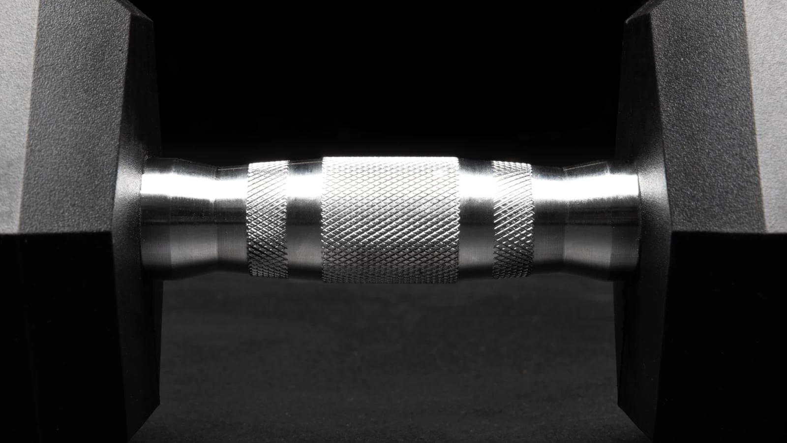 Sold in pairs, these Poly Hex Dumbbells are available in increments from 5 LB up to 50 LB, each with a weight tolerance of +/- 3%. The durable design includes solid steel heads wrapped in a NBR (rubber) and PVC (vinyl) overmolded injection mixture. This material is slightly harder than that of our standard Rogue rubber hex dumbbells, and has a minimum thickness of 5mm.