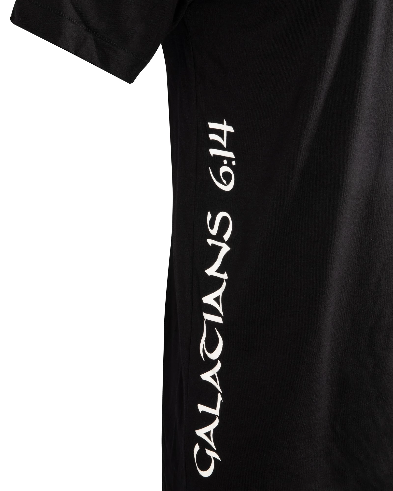 Available here in Black with a gray Rogue logo across the chest, this poly-cotton, athletic-cut tee also features one of Richโs favorite Bible verses, Galatians 6:14, printed on the right side in stylized text.