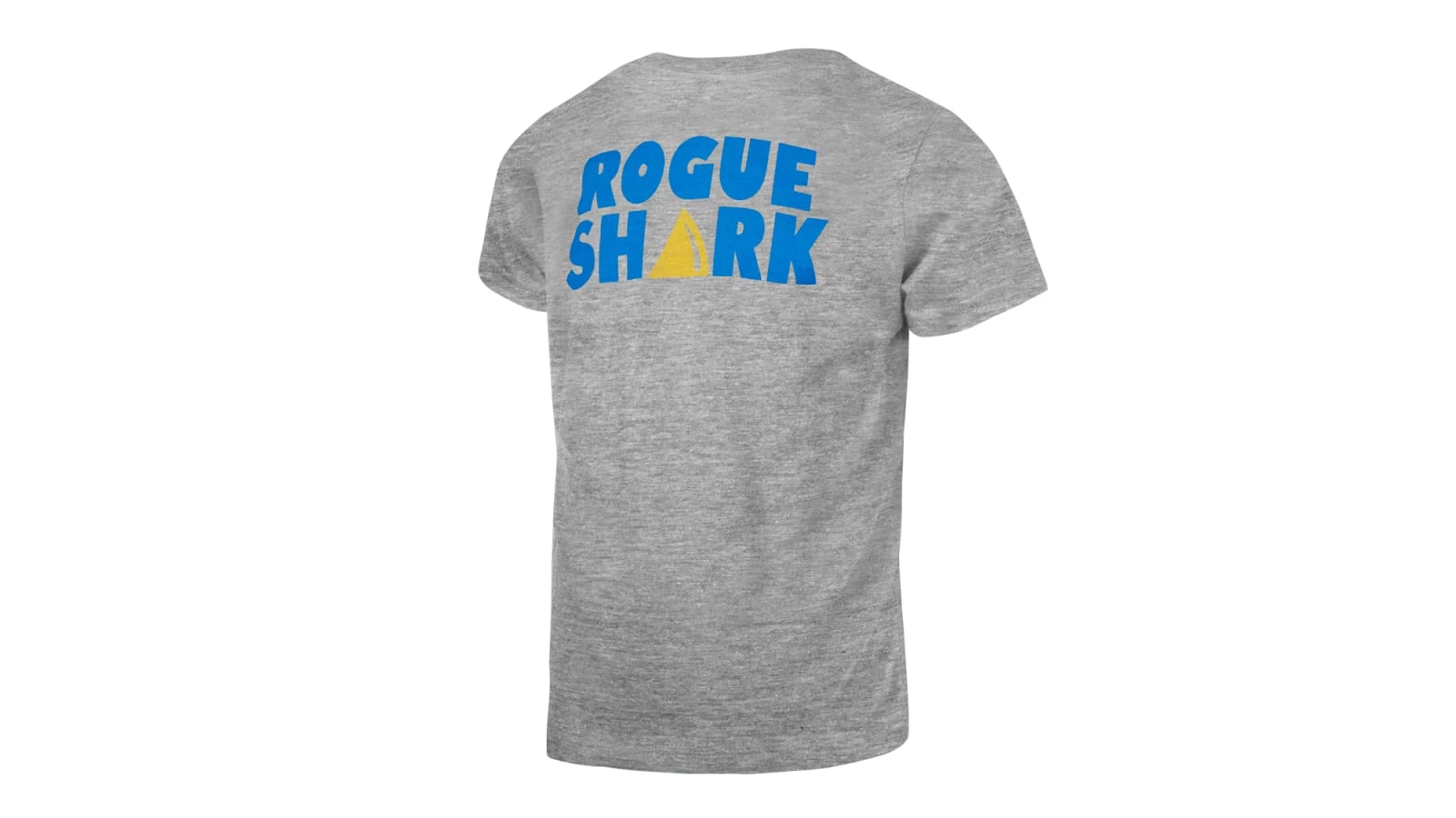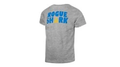 Beware the fin above the water. Our “Rogue Shark” shirt is designed for the kid athletes who will grow up to be next great Rogue athletes. These comfortable poly-cotton-rayon blend shirts are available here in grey with a cartoon blue shark on the front and the words “Rogue Shark” in bright blue and gold on the back. Six sizes to choose from.