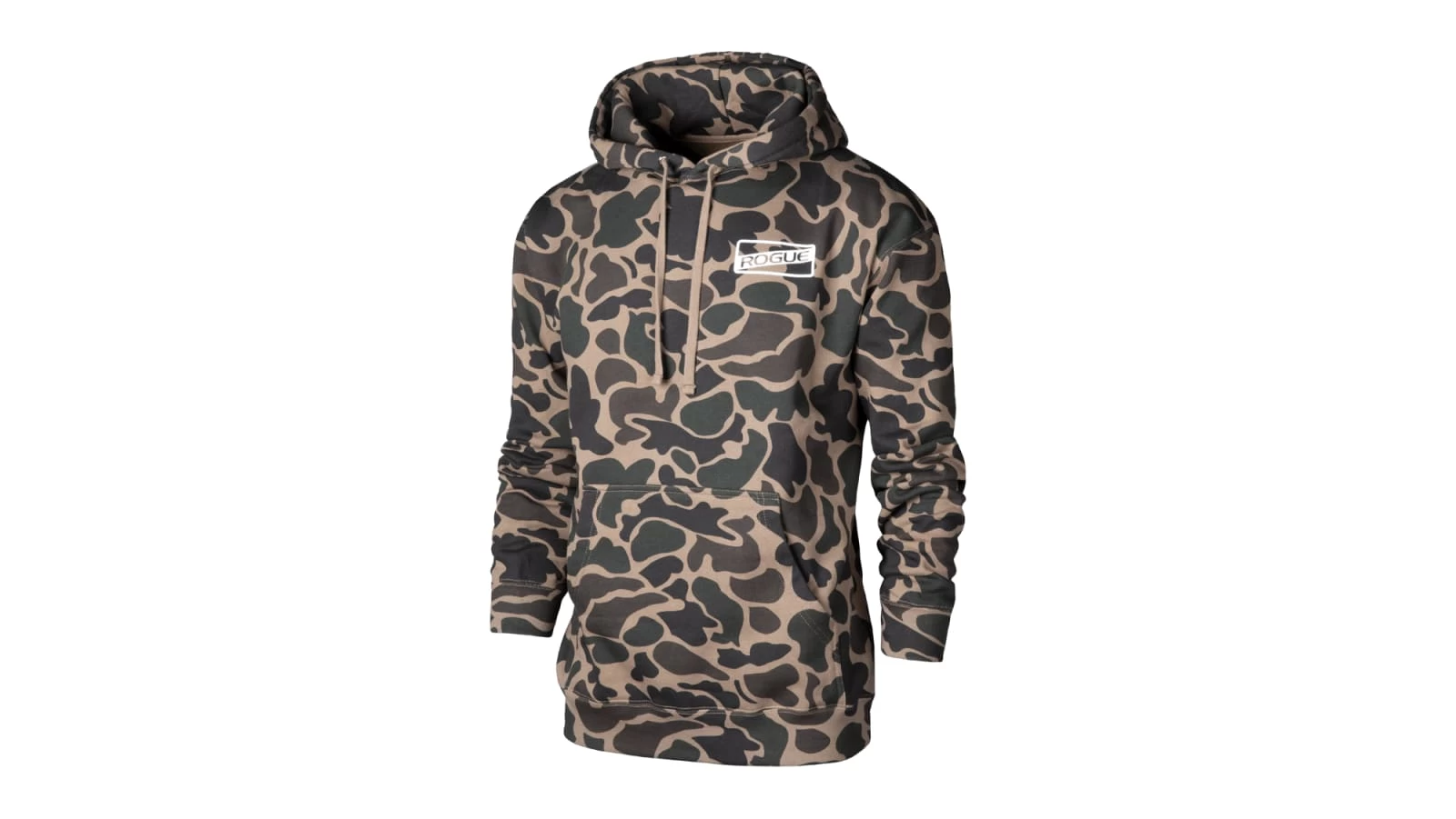 Available here in a Duck Camo pattern, Rogue’s Patch Print Hoodie is hand-crafted from premium ring-spun cotton 3-end fleece with a lined hood, heavy-gauge round drawcord, nickel eyelets, and 1×1 ribbing at the cuffs and waistband.