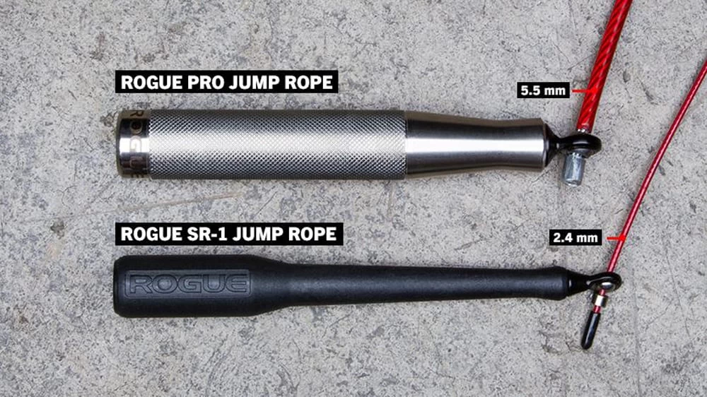 As seen in competition during the 2016 CrossFit Games, the Rogue PRO is a new breed of weighted jump rope—featuring a heavy 5.5MM coated cable (twice the thickness of our SR-1 cable) and a pair of 1LB stainless steel handles. The PRO Jump Rope comes with two weight plugs, also made from stainless steel, which are inserted into the end of each handle to create the heavier feel and greater resistance athletes seek to ramp up their speed rope training.