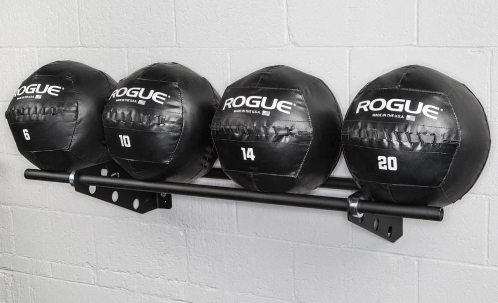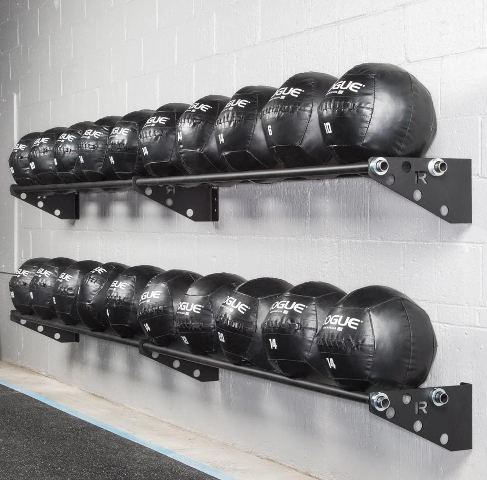 For any gym with more than a few medicine balls and less than enough storage space, Rogue Swiss Brackets are the zero footprint solution. Sold in pairs, these 0.1875″ thick laser cut steel brackets (packaged with a set of four shaft collars) allow gym owners to install a customized, wall-mounted medball storage rack in virtually any size training space.