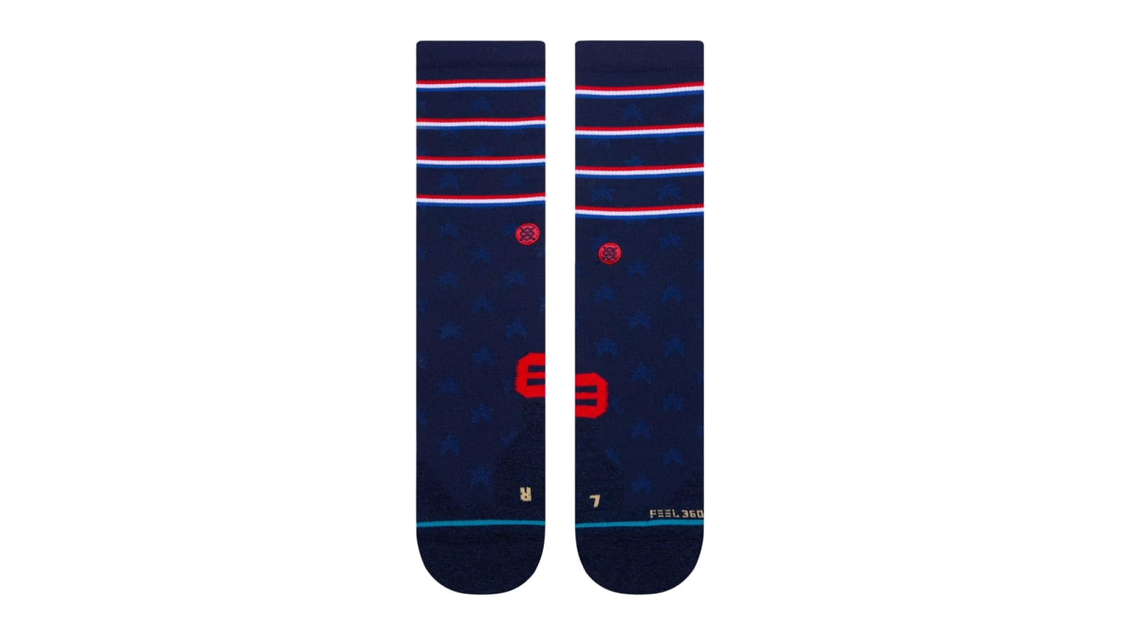 Available here in a navy blue crew style, Stanceโs Independence performance socks are durable enough for a high-intensity workout and comfortable enough for a day on the couch. Equipped with a reinforced heel and toe, special anatomical cushioning, and mesh airflow panels to keep your feet cool and comfortable, this design also features Stanceโs advanced FEEL360 and InfiKnit technology, which help prevent tears and eliminate odor and moisture as you train.