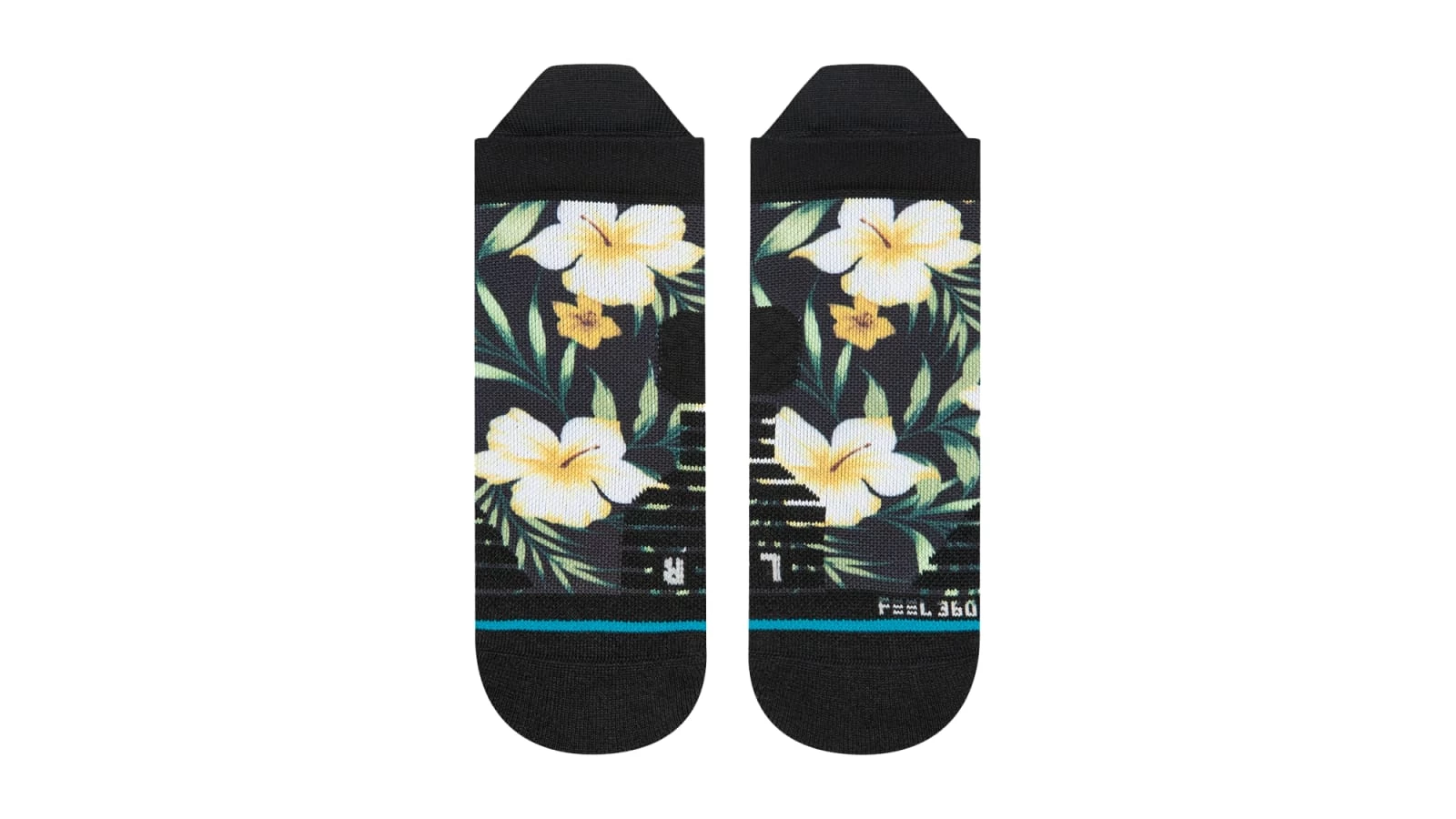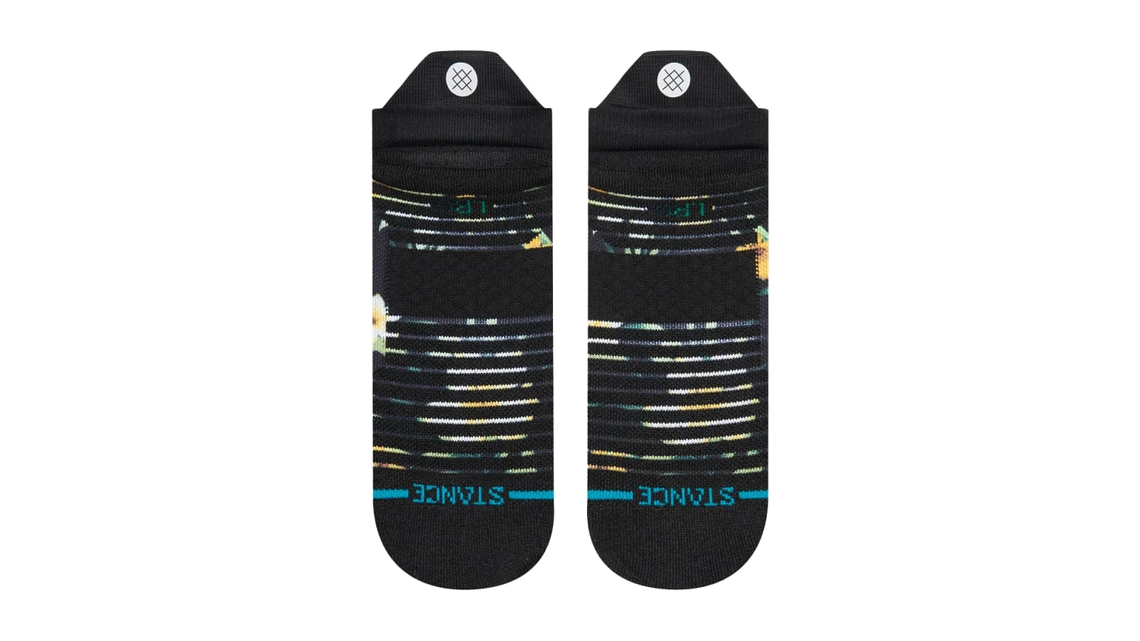 The polyester blend Terrace Tab Sock from Stance is equipped with special anatomical cushioning, mesh airflow panels, and a protective rear tab; all in a colorful tropical pattern. This low-rise design also features Stance’s advanced FEEL360 and InfiKnit technology, which help prevent tears and eliminate odor and moisture as you train.