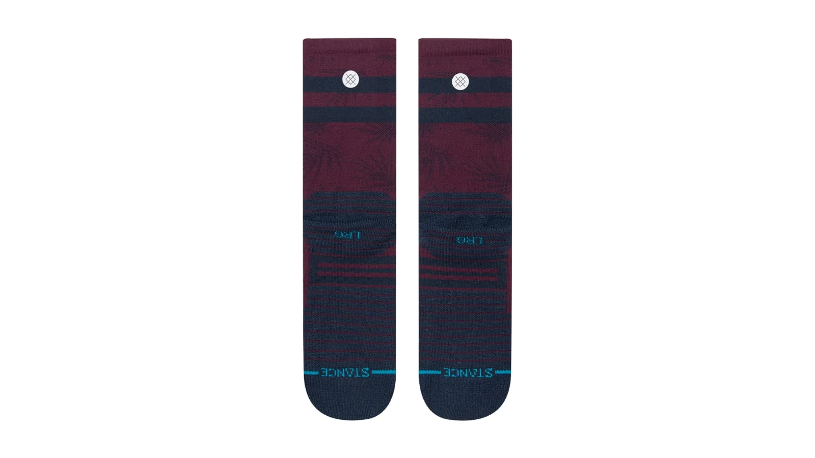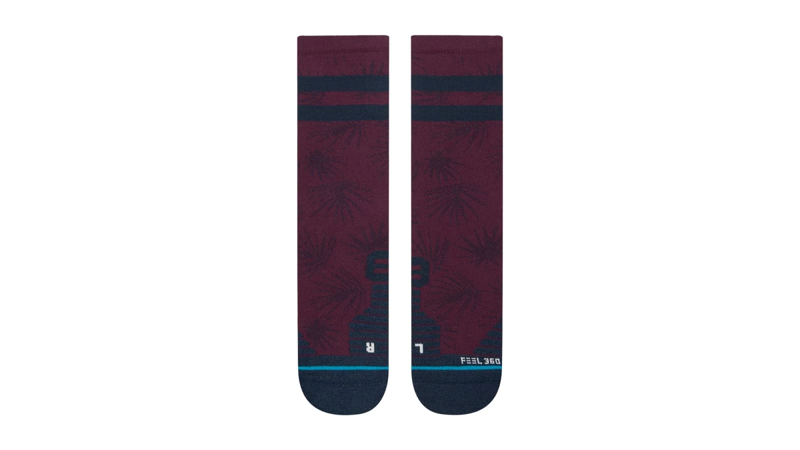 Available here in maroon colorway, Stance’s Tropix Mesh crew socks are durable enough for a high-intensity workout and comfortable enough for a day on the couch. Equipped with engineered arch support, medium anatomical cushioning, and a seamless toe closure, this design also features Stance’s advanced FEEL360 and InfiKnit technology, which help prevent tears and eliminate odor and moisture as you train.