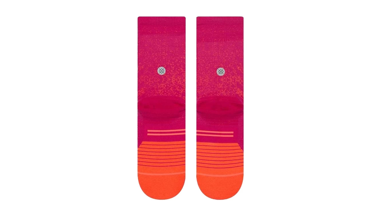Stance’s “Uncommon Run Crew” joins a new breed of women’s athletic sock, equipped with a durable reinforced heel and toe, special anatomical cushioning, and breathable mesh panels to keep your feet cool and comfortable. Individual designs for the left and right foot ensure a contoured fit, and Stance’s FEEL360 technology helps eliminate both odor and moisture. The Uncommon Run Crew also offers targeted leg compression for next level performance.